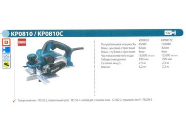 - Рубанок электрический MAKITA KP0810C (1050Вт, 12000об мин, 82мм, гл.строг-4.0мм, 3.4кг) по выгодной цене 7 850 р. руб.;