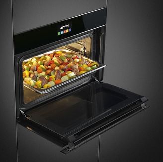 Компактный духовой шкаф Smeg SF4604PVCNX1 комбинируется с пароваркой, что расширяет кулинарные возможности. Модель в черном цвете аккуратно дополнена стальным профилем, что является основным лейтмотивом серии Dolce Stil Novo. C фасадной стороны расположен сенсорный TFT-дисплей с интуитивно понятной навигацией. Функционал предусматривает 12 режимов нагрева, 3 из которых предусматривают приготовление на пару. Внутренняя камера объемом в 41 литр выполнена из эмали Ever Clean, которая легко поддается очистке. Тройное остекление исключает вероятность получения ожогов. Необходима предоплата 50%. Есть доставка.