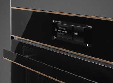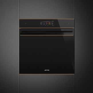 Многофункциональный духовой шкаф с функцией пароувлажнения, SmegConnect, 60 см, черное стекло Eclipse, профиль медный. Класс энергопотребления А+. Необходима предоплата 50%. Есть доставка.