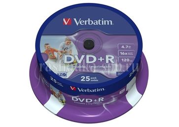 - Диск Cake-25 шт (bulk) DVD+R Verbatim 16x 4.7 Gb wide photo printable по выгодной цене 343 р. руб.;