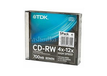 - Диск CD-RW Slim case (box) TDK 4-12х 700Mb (5 шт) по выгодной цене 157 р. руб.;