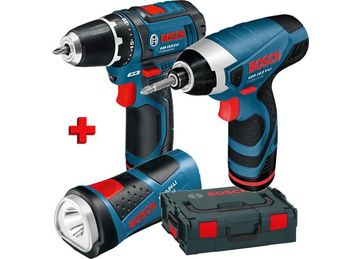 - Дрель аккумуляторная BOSCH GSR 10.8-2 V (0615990CL0) + гайковерт GDR 10.8 + фонарь L-Boxx по выгодной цене 9 400 р. руб.;
