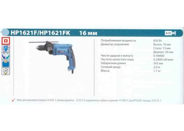 - Дрель ударная MAKITA HP1621F (650Вт, 0-2800об мин, рев, БЗП-13мм, 1.7кг, подсветка) по выгодной цене 2 950 р. руб.;