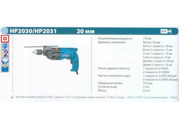 - Дрель ударная MAKITA HP2030 (710Вт, 0-850 0-2900об мин, рев, ЗВП-20мм, 2.5кг, кейс) по выгодной цене 4 950 р. руб.;