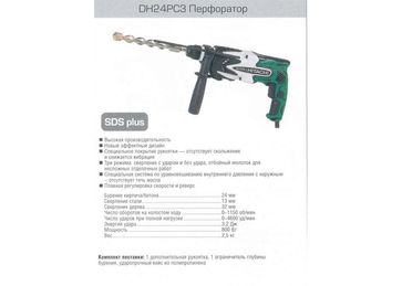 - Перфоратор SDS- Plus HITACHI DH24PC3 (800Вт, SDS-plus, 3.2Дж, 3реж, кейс) по выгодной цене 4 750 р. руб.;