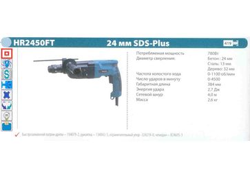 - Перфоратор SDS- Plus MAKITA HR2450FT (780Вт, 2.7Дж, SDS-plus, 3 реж, FIX-TEC, 2.6кг, +патрон, подсв, кейс) по выгодной цене 6 250 р. руб.;