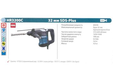 - Перфоратор SDS- Plus MAKITA HR-3200C (850Вт, SDS-plus, 3-х реж., 5.5Дж, рег, 4.4кг, кейс) по выгодной цене 16 500 р. руб.;
