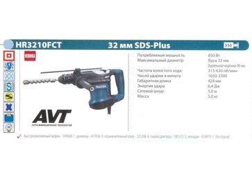 - Перфоратор SDS- Plus MAKITA HR-3210FCT (850Вт, SDS-plus, AVT, 3-х реж., 5.5Дж, рег, 5.0кг, +патрон, кейс) по выгодной цене 18 400 р. руб.;