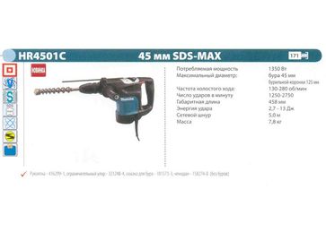 - Перфоратор SDS-Max MAKITA HR-4501C (1350Вт, 12.5Дж, 45мм, SDS-MAX, 7.8кг, кейс) по выгодной цене 20 100 р. руб.;