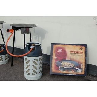 *На газовой горелке можно использовать товары Muurikka:сковорода походная48 сми58 см,сковорода походная вок43 см,стальная паэльера 40 сми50 см,стальной вок 40 см,сковорода чугунная гриль 42 см,коптильня 42см,кастрюля 10 ли15 л.