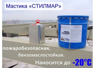 «СТИЛМАР»- МАСТИКИ нового поколения, не имеющие аналогов в мире. Одно- и двухкомпонентные кровельные, гидроизоляционные и антикоррозийные, для низких температур эксплуатации, с высоким коэффициентом прочности на разрыв и коэффициентом растяжения - 650%. Не боятся осадков после нанесения. Не содержат растворителя и воды.Могут наносится в зимний период при температуре до -20°С.Пожаробезопасны, не токсичны. Экологически чистые, могут применяться для резервуаров с питьевой водой. Также отличительной чертой от других материалов является высокая адгезия к любым поверхностям.