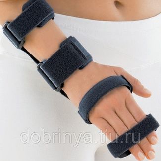 иммобилизация лучезапястного сустава и пальцев кисти; уменьшает боль и отёк.