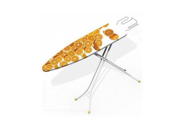 Регулируется по высоте; Материал нижней рамы: окрашенная стальная труба диаметром 19 мм; Материал подставки для утюга: стальной хромированный провод; Материал чехла: 100% хлопок с мольтоном; Плоскость сетки размером 110x33 см; Размеры: 110x33x90 см; Размеры в сложенном виде: 33x4,5x142,5 см;... None