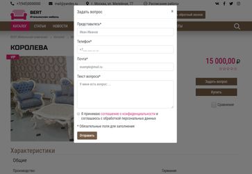 - КоЛайн: BERT2- сайт мебельной компании в каталоге Готовый бизнес в Санкт-Петербурге, Кировском р-н;