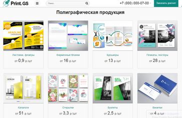 - Print.GS – Типография, полиграфия, сувениры. Продающий сайт компании с каталогом по выгодной цене 5 940 р. руб.;