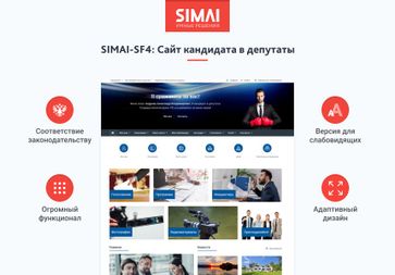 - SIMAI-SF4: Сайт кандидата в депутаты – адаптивный с версией для слабовидящих по выгодной цене 31 920 р. руб.;