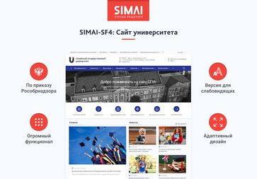 - SIMAI-SF4: Сайт университета – адаптивный с версией для слабовидящих по выгодной цене 31 920 р. руб.;