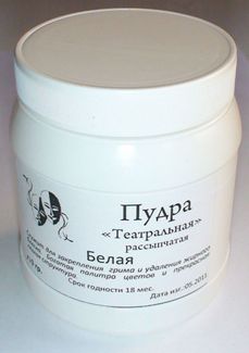 Классическая театральная пудра. Применяется в театре и кино для закрепления грима и удаления жирного блеска. Масса 100 гр. Можно выбрать цвет из 8 имеющихся оттенков. None Есть доставка.