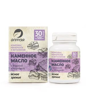 - "Каменное масло "Ясное зрение" с очанкой и черникой", 30 капсул по 500 мг по выгодной цене 379 р. руб.;