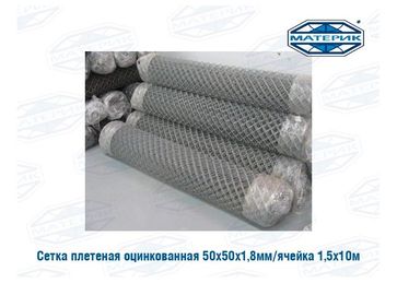 - Сетка плетеная оцинкованная 50х50х1,8мм ячейка 1,5х10м по выгодной цене 697 р. руб.;
