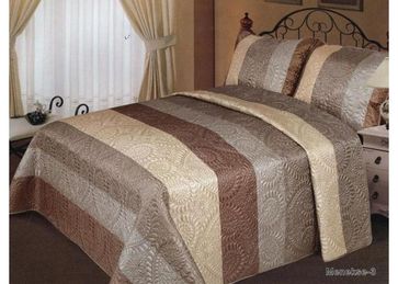Элегантное покрывало современного дизайна изготовлено из искусственного шелка - его еще называют полиэстер, обладает рядом положительных качеств: оно прочное, износостойкое, не линяет и не мнется, и мягкое на ощупь. Ткань держит форму и быстро высыхает после стирки.