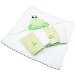 Комплект (полотенце с капюшоном+салфетки) Лягушка Spasilk, 76х76 см; 24х24 см, зелёный