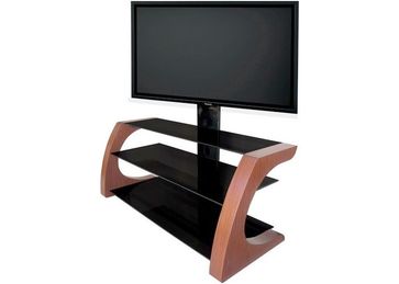 Стойка с плазмастендом и 2-я стеклянными полками с боковыми опорами, шпон натурального дерева, ширина 1060мм None