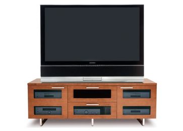 Тумба, разделенная по ширине на три секции. Имеет по бокам два отделения с полками, в центре – верхний выдвижной ящик (для акустики и DVD-дисков) и нижний отсек. Отделка: Natural Stained Cherry, Espresso Stained Oak,Chocolate Stained Walnut None