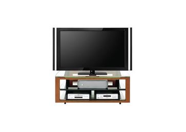 3 полочная стойка под телевизор с регулируемой центральной полкой. Полки из прозрачного стекла обрамлены привлекательной деревянной рамой. Превосходно подходит для домашнего театра большого размера. Габариты: 480х1550х500 мм. Рекомендуемый размер телевизора по диагонали: 40–62". Отделка: Natural Stained Cherry None
