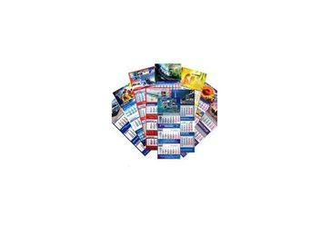 Разработка дизайна и печать календарей формата "трио". Это разновидность настенных календарей, состоящих из шпигеля с полноцветной иллюстрацией и отрывных календарных блоков.