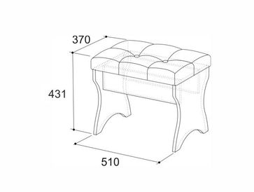 На сидении каретная стяжка. Обивка из экокожи. Корпус изготовлен из белого ЛДСП 16 мм с ПВХ кромкой. Схема