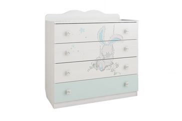 4-ре вместительных ящика. На фасадах рисунок — Зайчик на качелях. Принт устойчив к истиранию и воздействию ультрафиолета.