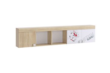 Полка изготовлена из ЛДСП 16 мм в цвете Дуб Сонома с кромкой ПВХ. Фасады белые с принтерном рисунком "Тигр на скейтборде". Принт устойчив к истиранию и воздействию ультрафиолета. Увеличенное фото принта на фасаде