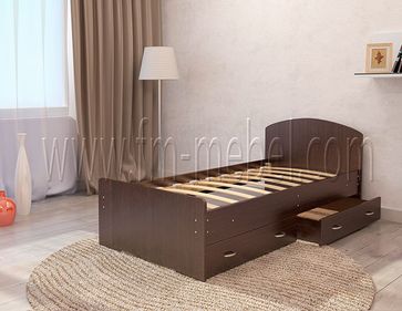 Каркас кровати изготовлен из ЛДСП 16 мм. На спинка мягкий Т-образный мебельный кант отличающейся своей надёжностью и долговечностью.Кровать надёжная, собирается на металлические уголки. Под ламели устанавливаются МДФ планки Ящики на колёсиках, катаются по полу Купить одноместную кровать в СПб недорого из подборки нашего каталога. None Страна производства: Россия Возможен самовывоз. Есть доставка.