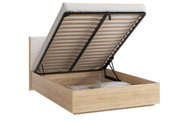 Изготовлена из ЛДСП 16 мм с противоударной ПВХ кромка. Изголовье из белой экокожи Под подъемным механизмом ящик под постельное бельё — две секции. Схема