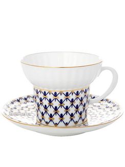 Закажите Фарфоровая чайная чашка с блюдцем форма "Волна", рисунок "Кобальтовая сетка", Императорский фарфоровый завод у компании Тульские самовары в Санкт-Петербурге на портале Alloy: