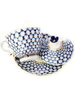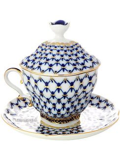 - Фарфоровая чайная чашка с крышечкой и блюдцем форма "Подарочная-2", рисунок "Кобальтовая сетка", Императорский фарфоровый завод в каталоге Кладочная сетка в Санкт-Петербурге;