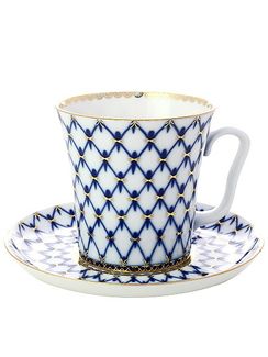 Закажите Фарфоровый бокал с блюдцем форма "Ленинградский", рисунок "Кобальтовая сетка", Императорский фарфоровый завод у компании Тульские самовары в Санкт-Петербурге на портале Alloy: