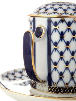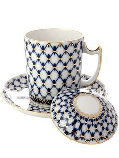 - Фарфоровый бокал с крышечкой и блюдцем форма "Снежное утро", рисунок "Кобальтовая сетка", Императорский фарфоровый завод по выгодной цене 4 450 р. руб.;