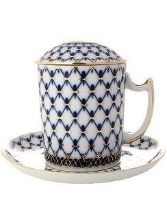 - Фарфоровый бокал с крышечкой и блюдцем форма "Снежное утро", рисунок "Кобальтовая сетка", Императорский фарфоровый завод в каталоге Кладочная сетка в Санкт-Петербурге;