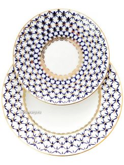 - Фарфоровый чайный 3-x предметный комплект форма "Волна" рисунок "Кобальтовая сетка", Императорский фарфоровый завод по выгодной цене 4 580 р. руб.;