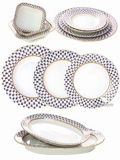 Закажите Фарфоровый столовый сервиз на 6 персон форма "Молодежная", рисунок "Кобальтовая сетка" 6 24, Императорский фарфоровый завод у компании Тульские самовары в Санкт-Петербурге на портале Alloy: