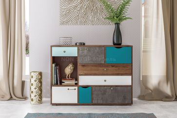 Комод 8 ящиков Вайс 10.104 (с нишей) Цвет морское дерево винтаж / белый премиум / мята / бензин / камень темный Размер комода 1212х399х888h None