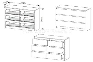Комод широкий Мори 1200мм (6 ящиков) Размер 1200 х 406 х 778h, мм Цвет ЛДСП Белый (не глянец) Можно дополнить другими элементами серии Мори Есть такой же комод, но более широкий 1382мм Дно ящиков, задние стенки - ХДФ белый Направляющие - роликовые Глубина ящиков 350мм None