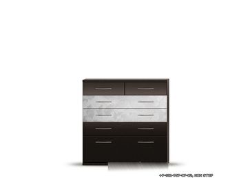 Норман Комод, СВ-47 Габаритные размеры (мм): 900 х 936 х 403 Цвет корпуса: дуб феррара Цвет фасада: черный глянец/белая шелкография Описание: Комод с фасадами в черном глянце и белой шелкографии. В больших выдвижных ящиках можно спрятать большое количеств