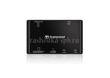 Карт-ридер Transcend RDP7, all-in-1 + 3 USB порта, USB 2.0, Черный