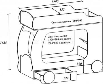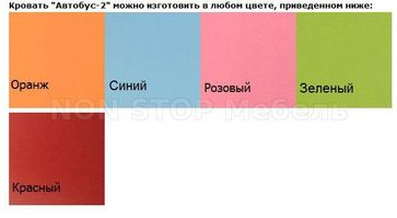 Детская двухъярусная кровать Автобус-2 с лестницей трубы Размеры : 1685х1985х832 Размер спального места : Верх 800х1900, Низ 800х1900/1600 Цвет : Розовый, Зеленый, Красный, Оранжевый, Синий Высота верхнего бортика 300мм Доставка и подъем по СПб бесплатная или скидка при самовывозе или отправке в другие регионы Кровать детская двухъярусная "Автобус-2". Яркий дизайн детской двухъярусной кроватки "Автобус-2" не оставит равнодушным ни одного ребенка, будь то мальчик или девочка. Размер спального места составляет: верх 8001900мм. низ 8001600мм или 8001900мм. На нижнем ярусе можно собрать в изголовье сундук для белья и тогда спальное место будет 8001600мм. Но если не собирать сундук, то внизу получается стандартное спальное место 800*1900мм. Кровать детская двухъярусная "Автобус-2" выполнена из качественного ЛДСП 16мм, а антивандальная клееная кромка ПВХ 2мм защитит ребенка от трамв. None