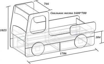 Детская кровать с ящиками Грузовик Габариты: 1786х766х1027h Спальное место 700х1600 (есть вариант с большим спальным местом - стоимость уточняйте) Цвет на выбор None