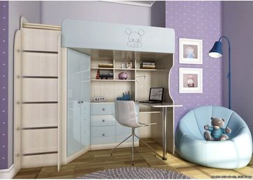 Детский Комплекс Бемби 3 Фасады: МДФ ПВХ Розовый металлик, Голубой металлик Корпус: ЛДСП Беленый дуб Размеры:2030х1950х930 Спальное место 900х2000