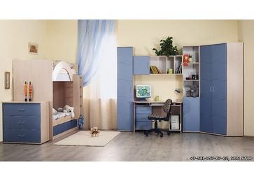 Комплект детской мебели 2 Сильва КАРКАС: ЛДСП ДУБ МОЛОЧНЫЙ ФАСАД: МДФ+ПВХ «ШТОРМОВОЕ МОРЕ» ФРЕЗА: «ВОЛНА» Возможно изменить комплектацию, приобретение по отдельным предметам